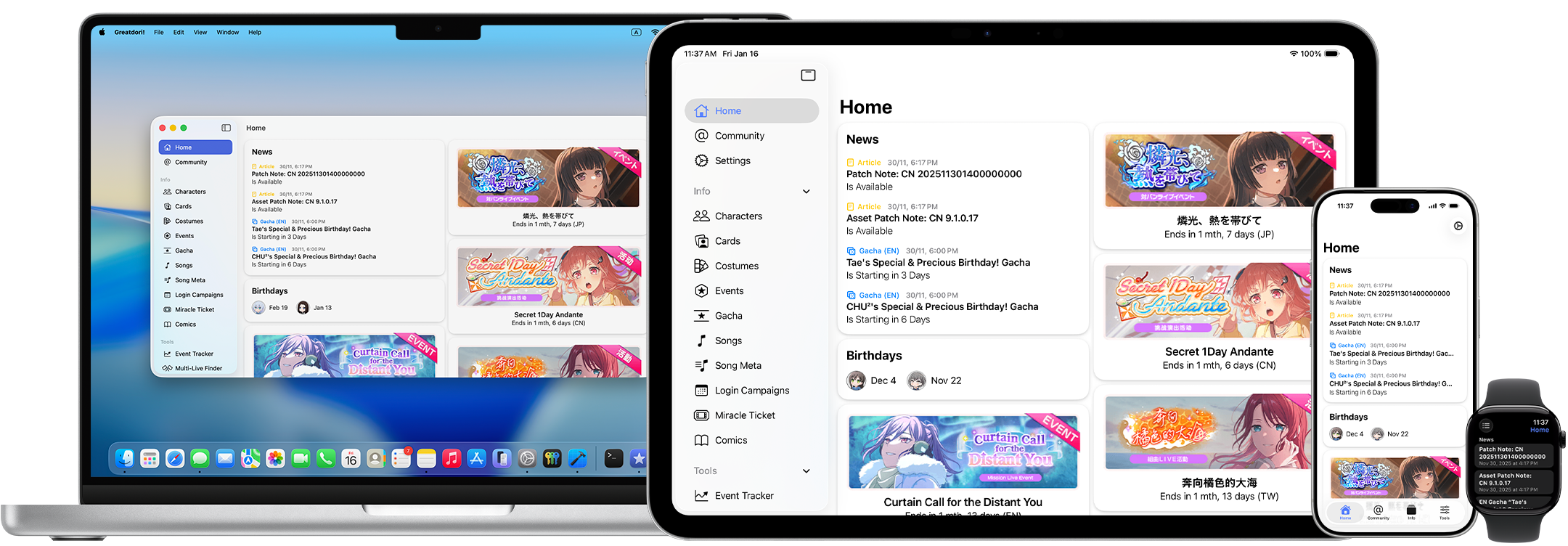 Greatdori! currently supports iOS, iPadOS, macOS, and watchOS.